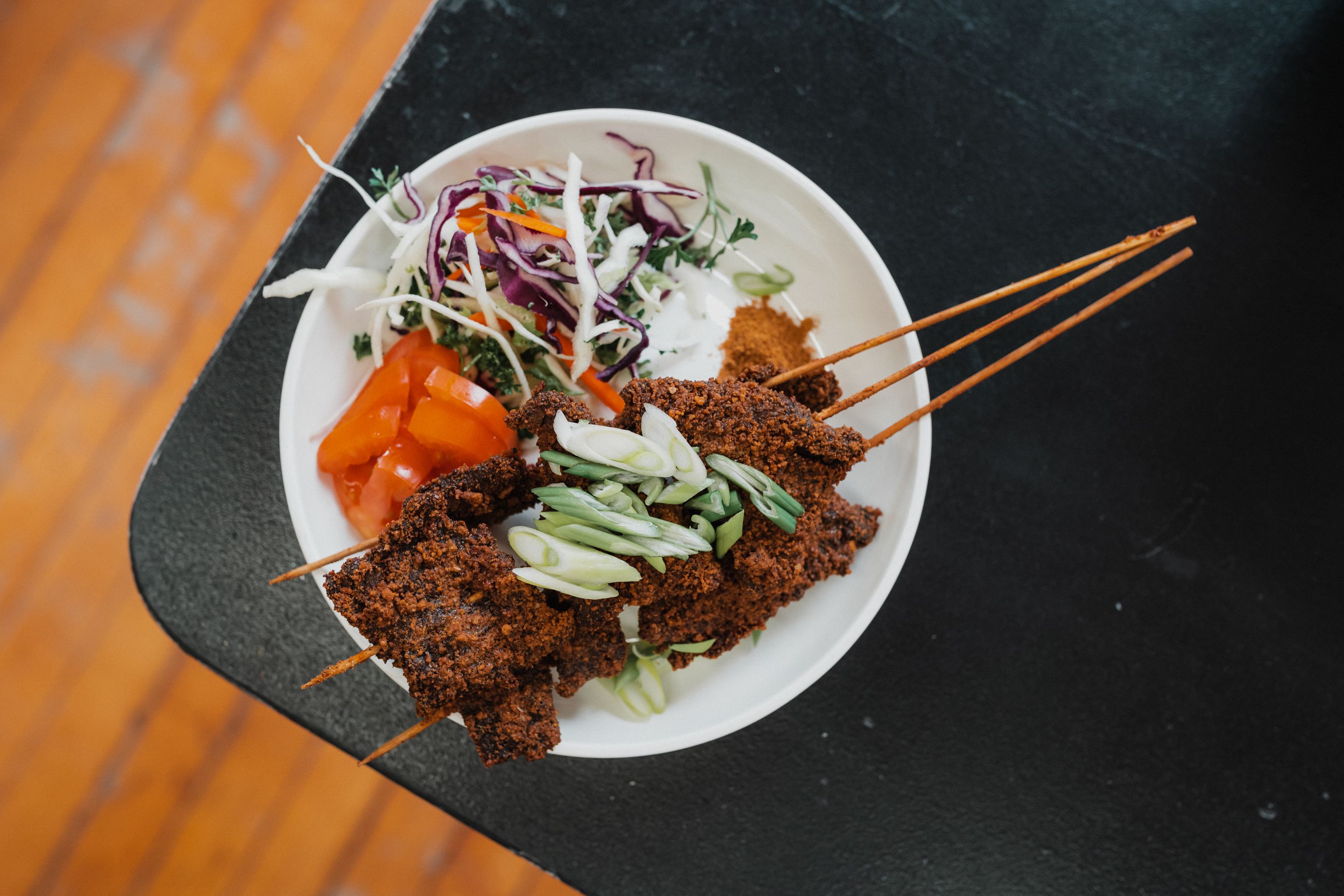 On Fridays, a five-course vegan dinner introduces grains like fonio — a 10,000-year-old West African staple cooked as easily as couscous or oatmeal. Saturdays stretch to seven, sometimes ten, courses, each plate paired with a short narrative: where the dish comes from, which cultures it anchors, how it shifts from region to region.